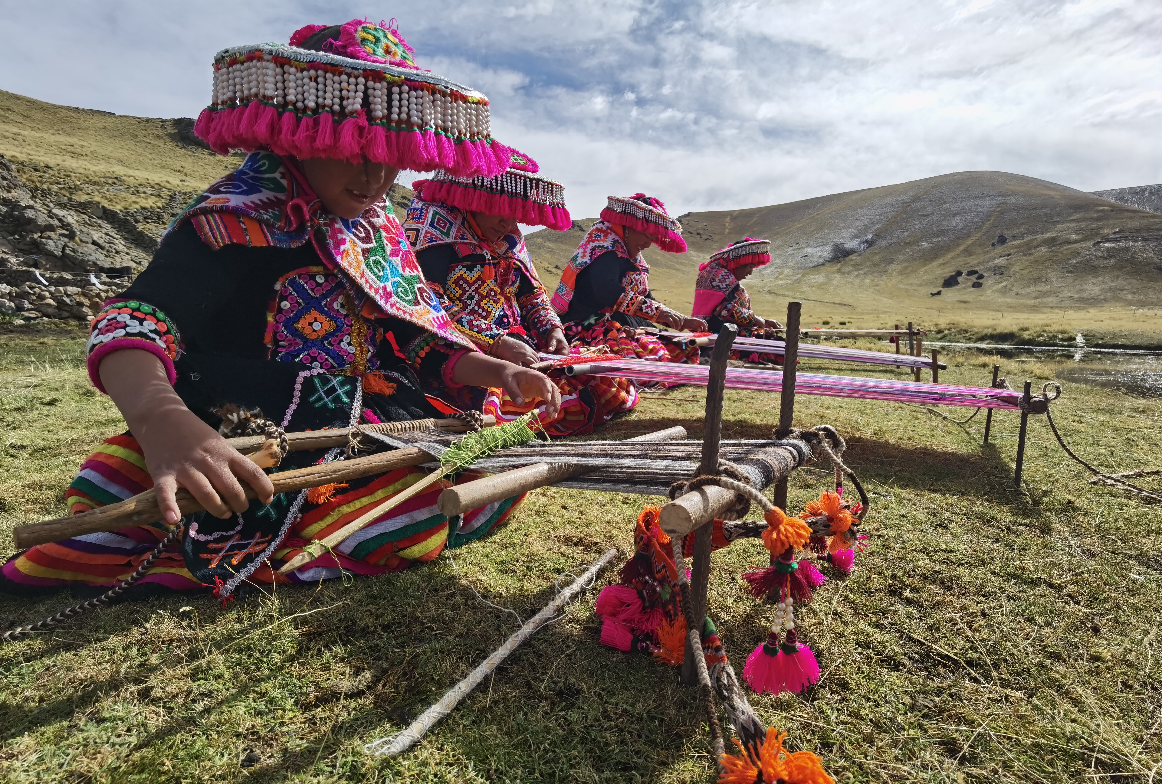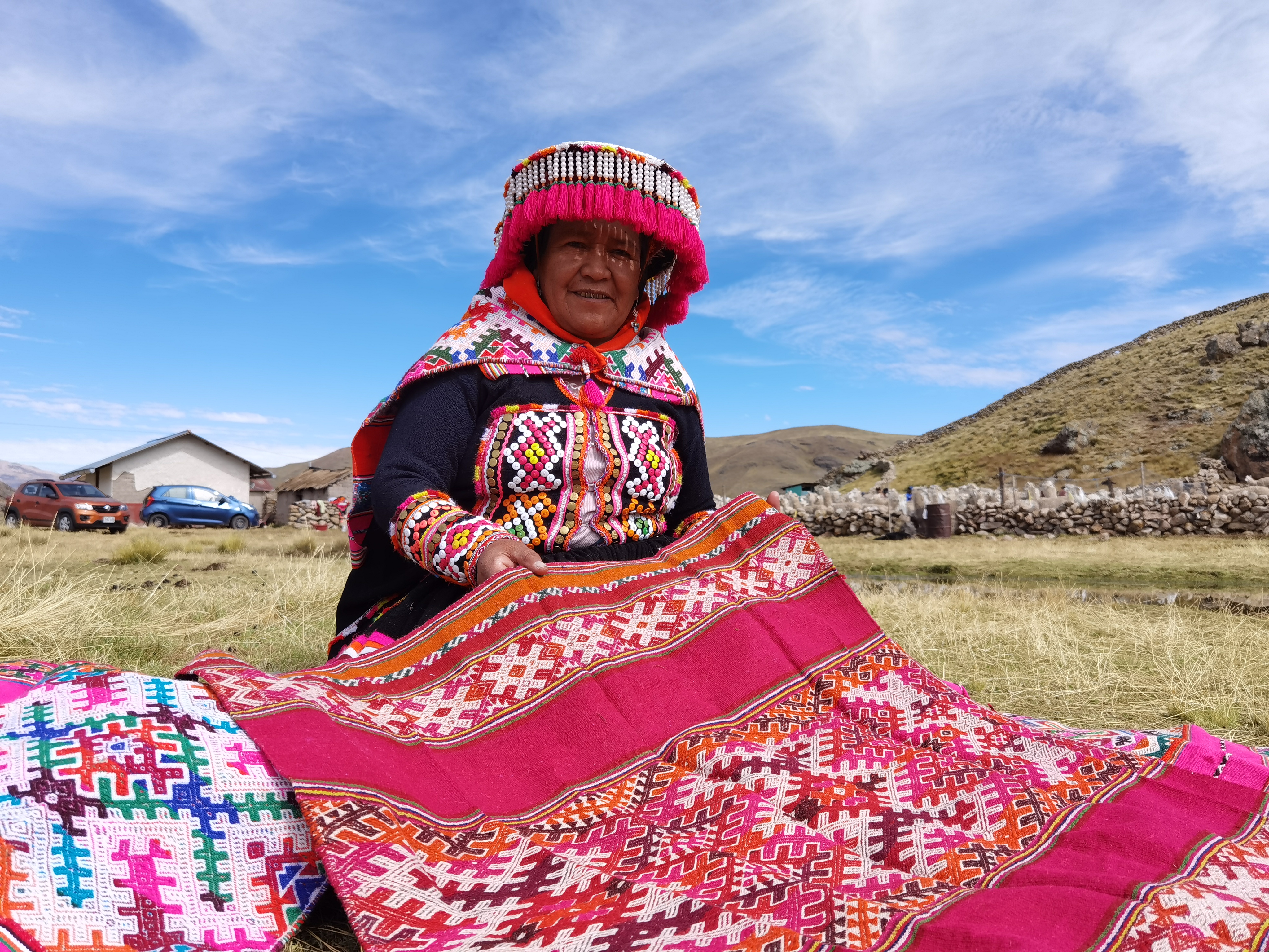 The traditional textile system of the Ayarachi culture in the Paratia community, Lampa, Puno (Peru), is a living heritage passed down over generations. It encompasses the entire production cycle of camelid fiber (alpaca), from selection and hand-washing, to natural dyeing with Andean plants (cochineal, muña, chilca, qolle), hand-spinning with the pushka or drop spindle (an ancestral technique in danger of disappearing), and weaving on various types of looms: telar de cintura (backstrap loom), pedal loom, and the most emblematic, the four-stake loom, used for making large pieces and utilitarian items with unique Ayarachi designs. This system is distinguished by its profound relationship with the Aymara and Quechua cosmovision, as the designs represent symbolic elements of the high-Andean culture. Silvia Condori Mamani, a "Maestra Regional de la Artesanía Puneña" and winner of the "Premio Nacional a la Mujer Artesana 2021" (MINCETUR), is one of the main transmitters of this ICH, having trained hundreds of women, youth, and adults for over two decades. Her work safeguards a unique cultural identity and contributes to the economic sustainability of the region's rural communities.